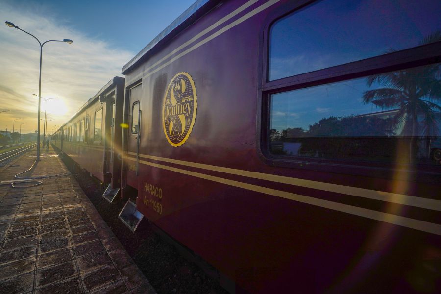 Return to the train as the afternoon light turns golden. Through the wide windows, the landscapes of Central Vietnam unfold — the Perfume River, ancient pagodas, and distant mountains fading into view. As the train winds past Lang Co Lagoon, calm waters and golden sands reflect the last hues of day.
