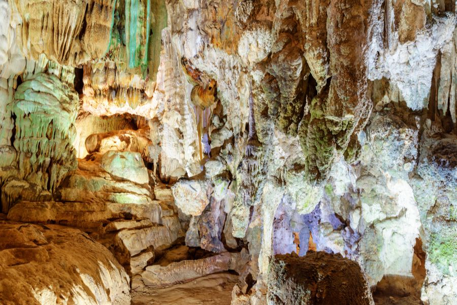 Soon, the entrance of Phong Nha Cave appears, dark and mysterious. Drifting inside, you are enveloped in silence broken only by echoes of dripping water. Stalactites and stalagmites shimmer like sculptures of light, each formation telling a story millions of years in the making.